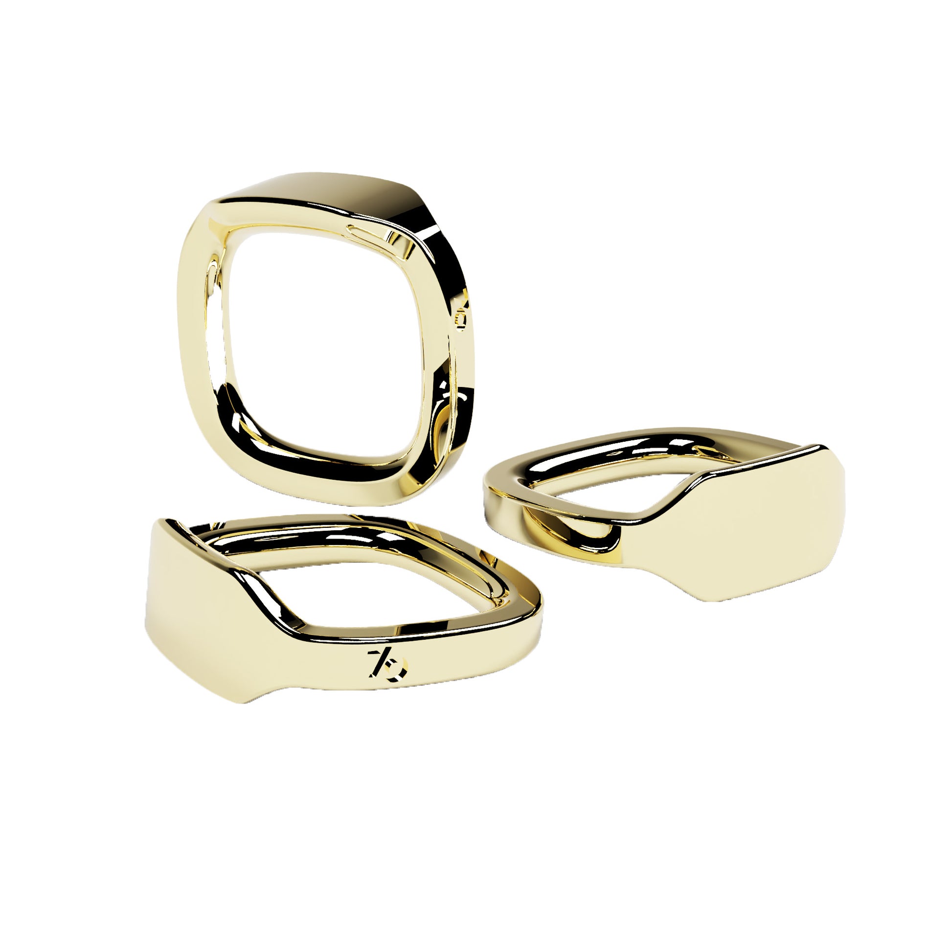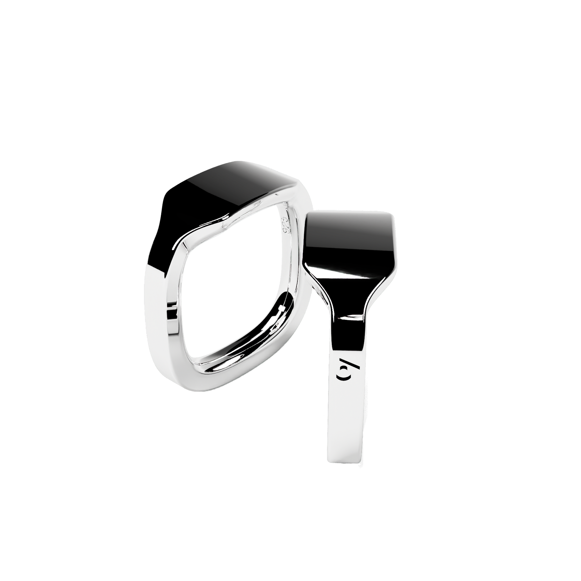 A signet ring designed from an intermediate geometry: the squircle, a form that balances softness and definition. Its volume is built through proportion and its relationship to the hand, prioritizing comfort, presence, and formal clarity.